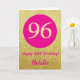 96th Happy Birthday Hot Pink and Gold Glitter Card with personalised name. For further customisation, please click the "Customise it" button and use our design tool to modify this template.