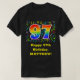 This fun, vibrant, and colourful birthday themed shirt design features a large number "97" with a rainbow spectrum gradient inspired pattern, along with the message "Happy 97th Birthday,", and a personalised name. A fun, colourful pattern of various music notes and music symbols appears behind the rainbow-coloured birthday number. Fun, personalised birthday themed shirts like this might be worn by the attendees at a birthday party being held to celebrate a song composer’s, a singer’s, a musician’s, or somebody else’s ninety seventh birthday. [~Z0000428]