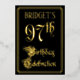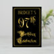 The front of this opulent, elegant, foil ninety-seventh birthday party invitation design features the message “97th Birthday Celebration” in fancy script-style text. It also features a customisable name. The background of the front is coloured black by default (although it can be customised to a different colour). The back features personalised details about the event, such as the date, time, location, and any other information that may be relevant. Fancy, luxurious, personalised invitations like these might be used to invite guests to a birthday celebration being held to honour somebody’s 97th birthday. [~Z0000589]