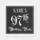 This elaborate and opulent birthday paper napkin design features a personalised name and the message “97th Birthday Party”. The large number “97th” and the words “Birthday Party” are in elegant script-style text, and the background is coloured black by default (although it can be customised). Ornate, opulent paper napkins like this might be useful to have at a birthday party/celebration being held to honour somebody’s ninety seventh birthday. [~Z0000563]