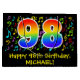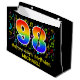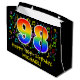 This fun, colourful, and vibrant birthday-themed gift-bag design features a large number "98" with a rainbow spectrum gradient inspired pattern, along with the message "Happy 98th Birthday,", and an editable name. Part of the background has a pattern of various music notes and symbols having a variety of colours and sizes. A birthday themed giftbag like this might be a fun way to wrap a gift or present being given to a singer, a music composer, a musician, or somebody else who is celebrating their 98th birthday. [~Z0000425]