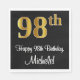 98th Birthday ~ Elegant Luxurious Faux Gold Look # Napkin