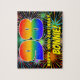 This joyful and upbeat birthday-themed jigsaw puzzle design features a large number “98” having a multicolored rainbow spectrum inspired gradient pattern. It also features the message “HAPPY 98th BIRTHDAY,”, and a personalised recipient name. The background has a fun, multicolored pattern inspired by bursting celebratory fireworks. An exciting, personalised birthday puzzle like this might be a fun way to deliver some birthday wishes to somebody who is celebrating their ninety-eighth birthday. [~Z0000605]