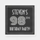 This elegant and 1920s-1930s style inspired ninety-eighth birthday party/celebration paper napkin design features an editable name, a fancy art deco style inspired number “98th”, the message “BIRTHDAY PARTY!”, and a multi-line border. It features a black-coloured background by default, but it can be customised to a different colour, if desired. Elegant paper napkins like these might be used when hosting a birthday party for somebody in celebration of their 98th birthday. [~Z0000616]