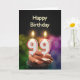 A birthday cake with candles. The candles are made up of the number 99, for a 99th birthday. A birthday card suitable for everybody.