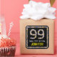 This fun, nature-inspired birthday square sticker design has the message “Happy 99th Birthday,” along with a personalised recipient name. The large number “99” plus the border both consist of flower icons. Stickers like these might be used when celebrating somebody’s ninety-ninth birthday. [~Z0000652]