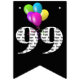Bold 99 number in black and white design on black background with colourful balloons for 99th birthday party