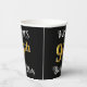 This luxurious and fancy birthday themed paper cup design features an editable name and the message “99th Birthday Party”. The large number “99th” has an imitation/faux gold-inspired coloring pattern, the words “Birthday Party” are in elegant script-style text, and the background is colored black by default (although it can be customized). Opulent, elegant paper cups like this might be used at a birthday celebration being held in celebration of somebody’s ninety ninth birthday. [~Z0000567]