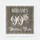 This fancy and ornate birthday party themed paper napkin design features a customisable name and the message “99th Birthday Party”. The large number “99th” and the words “Birthday Party” are in elaborate script-style text, and the background features an imitation/faux woodgrain-inspired pattern. Elaborate, elegant paper napkins like this might be used at a birthday party/celebration being held in celebration of somebody’s ninety ninth birthday. [~Z0000564]