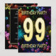 99th Birthday Party Invitation Fireworks Bubbles