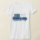 Classic urban elegance in honour of the 10th Anniversary of the terrorism attacks on September 11th. Classic depiction of the World Trade Centre in grunge blue on women's tshirt with New York City skyline silhoutted against the Twin Towers. Add your own custom text or personalised memorial message. Matching accessories available. If you are doing fund-raising events to benefit 9/11 victims' families, support groups and organisations, please contact us for SPECIAL NON-PROFIT BULK DISCOUNTS and we will be glad to customise this design specifically for your organisation's memorial observation. There is no extra charge for customisation. Patriotic 10th Anniversary -- 9/11 remembrance gifts, t-shirts, apparel, buttons, hats, magnets, and commemorative keepsakes and souvenirs.