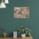 9 Panel Sepia Version de L'Isle World Map Frame 3 Poster