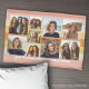 A collage of 9 photos in a fun grid with different sizes. A simple design with snapshots and a custom text block. Crop photos into squares before uploading. To adjust photos or change colours, click on the customise area to make changes.