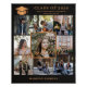 Modern stylish elegant graduate's name, class of year, and school personalised graduation congratulations keepsake printable poster featuring a faux metallic gold copper graduation cap topper, and 9 custom photos over a black leather like (PRINTED TEXTURE) background. Digital download available