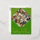 9 Photo Diamond Pattern Happy Holidays Green Gold Foil Holiday Postcard