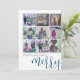 9 Photo Offset - Bold Script Merry - Dark Blue Holiday Card