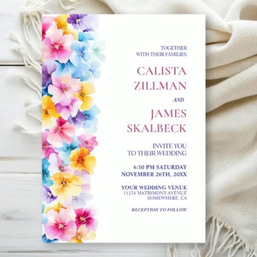 Help your guests find their table with this colourful floral seating chart. It is suitable for a wedding with 9 tables and 90 guests.