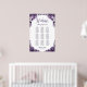 Help your guests find their table with this purple floral seating chart. It is suitable for a wedding with 9 tables and up to 90 guests.
