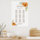 This yellow and pink floral seating chart will help your guests find their table. It is suitable for a wedding with 9 tables and up to 90 guests.