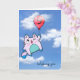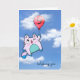 Cute kitty illustration with red balloon floating in clouds for 9th birthday.