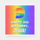 This exciting and cheerful birthday-themed paper napkin design features a large number “9” having a colourful rainbow spectrum inspired gradient pattern. It also features the message “HAPPY 9th BIRTHDAY,”, and an editable recipient name. The background also features a joyful multicolored rainbow spectrum inspired gradient pattern. Vibrant paper napkins like this might be fun to use at a birthday party in honour of somebody’s 9th birthday. [~Z0000573]