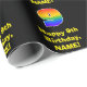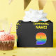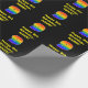 This joyful, cheerful, and vibrant birthday wrapping paper design features a large number “9” having a multicolored rainbow spectrum inspired gradient appearance, in addition to the birthday greeting message “Happy 9th Birthday,” and a customisable recipient name in bold yellow text. It also has a black-coloured background. Wrapping paper like this might be a fun way of wrapping a birthday present or gift being given to somebody who is celebrating their ninth birthday. [~Z0000525]