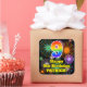 This joyful and cheerful birthday-themed square sticker design features a large number “9” having a colourful rainbow spectrum gradient inspired pattern. It also features the message “Happy 9th Birthday,”, and a personalised name. The background features a multicolored pattern inspired by the appearance of bursting celebratory fireworks. Fun, vibrant, personalised stickers like this might be given as a birthday gift, or used while wrapping gifts/presents, or perhaps used as a birthday party decoration when celebrating somebody’s 9th birthday. [~Z0000579]