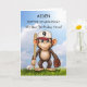 Make your grandson’s 9th birthday unforgettable with this personalised baseball card! A playful monkey, bat in hand and glove ready, stands against a bright blue sky, bringing sporty fun to his special day. Add his name to the front for a custom touch he’ll love. This lively and cheerful design is perfect for any nine-year-old baseball fan!