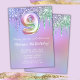 9th birthday party invitation purple pink glitter drips 9th birthday party invitation for a 9 year old girl with modern script writing and fun foil balloons.