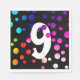 Neon rainbow dot pattern on black background for 9th birthday party.