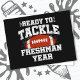 This fun freshman year design is perfect for a high school freshman football player or 9th grade teacher that loves to support their high school football team! Perfect for back to school, 8th grade graduation or all school year long! Features 'Ready To Tackle Freshman Year' high school freshman quote w/ football graphic. Great for a 9th grader or ninth grade teacher that loves to watch or play football!