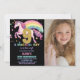 9th Unicorn Birthday Invitations Black with photo
