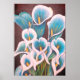 A4 Beautiful Teal Flowers acrylic Painting Print