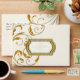 NOTE: This is a flat printed image, there are no jewels, raised layers or gold metallic elements. COLOR PALETTE: black, soft creamy white with faux gold metallic glitter look DESIGN COLLECTION: A7, Wedding Invitation size envelop, envelope. Matching two sided printed envelopes to match the wedding invitation set of the same name. Inspired by Old Hollywood and her heyday glam era, this wedding invitation set is perfect for elegant, sophisticated, modern wedding celebrations. A classic, beautiful swirling leaf damask style pattern has been graphically designed to look like a silver edged gold glittery embroidered lace design with a golden buckle that has a diamond border over faux glitter. A contemporary typography layout for your invite wording and information updates this vintage retro design. A gorgeous, unique and pretty design for the most discriminating bride.