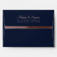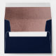 A navy blue 5x7 envelope with a faux rose gold foil Lining Inside. This elegant and sparkly metallic pink rose gold classic blue all purpose envelope is a classy way to send invitations. You can customise and personalise your name and address on the back flap.