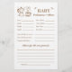 Create a sweet keepsake for the parents-to-be with this Baby Predictions and Advice card. Featuring a cosy coffee cup with heart and mocha kettle in a simple rustic design, this card invites guests to guess baby’s birth date, weight, and other fun details, then share their best parenting advice. Perfect for a Café Bébé baby shower or Baby Is Brewing brunch, these cards make a meaningful activity during the shower and a treasured memory for the family after the celebration.
