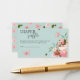 A baby is brewing garden tea party gender neutral baby shower diaper raffle enclosure card.This gender neutral baby shower features teacups with blush pink flowers and butterflies with a cup cake in paper texture background,the back side of the card features mint green colour with teacups in lineart.A perfect gender neutral rustic baby shower tea party theme.
