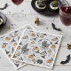 A whimsical hand-drawn Halloween pattern from the "A Baby is Brewing" baby shower collection, illustrated in black ink. Features a pattern with an antique baby carriage, black crow and pumpkins on a soft grey background.