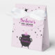 Add a touch of Halloween magic to your baby shower with these enchanting favour boxes! Featuring the silhouette of a beautiful pregnant witch and a magical cauldron, these boxes are perfect for a festive and unique celebration. The cauldron bubbles, with a colourful potion, add a whimsical touch to the black design. Surrounded by stars, these boxes blend the joy of a baby shower with the spooky charm of Halloween. Ideal for those who love a unique and festive touch!
