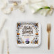 Celebrate the upcoming arrival of your little one with these enchanting paper plates. Featuring a vintage-style illustration of a pregnant witch in a floral starry gown, a bubbling cauldron with purple smoke, pumpkins, and elegant Halloween floral accents, these plates are the perfect mix of whimsical and spooky. Personalise it with your event details and impress your guests with a magical start to your celebration. Ideal for fall or Halloween-themed baby showers.