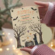 A baby is brewing... and so is the excitement! Celebrate the little pumpkin on the way with this whimsical Halloween witch baby shower invitation. Featuring magical elements like a witch’s hat, broomstick, bats, stars, and cauldrons, this invitation sets the scene for a charmingly spooky celebration for the mummy-to-be.
