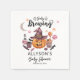 Cute "A Baby Is Brewing" Baby Shower design featuring a jack-o-lantern in a floppy witch hat surrounded by cupcakes, potion, lollipops and Halloween candy beneath the moon and stars. All that is needed is the Mum-to-Be to make this design complete. Composite design by Holiday Hearts Designs (rights reserved).