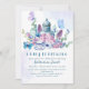 It's time for tea with the mum to be! This modern and elegant script typography baby shower invitation features a vintage style teapot kettle with watercolor flowers in blue,purple and pink with botanical foliage leaves and greenery with watercolor blue background.A Perfect baby shower tea party invitations.The back of the card is blue,pink and white antique pattern.