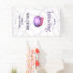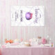 Adorable girl baby shower welcome banner with an illustration of a witch cauldron bubbling in pink and purple colours. Illustrated and designed by Patricia Alvarez.