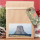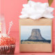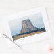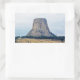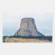 A photograph of a laccolithic butte known as, Devils Tower National Monument, towering over the landscape of rural Wyoming, one Summer day.