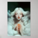 Illustration of beautiful woman meditating in the clouds, in the style of fantasy digital art