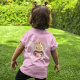 At the centre of this enchanting t-shirt is an irresistibly cute bumblebee character. With its round body and endearing expression, this bee exudes warmth and charm. Its faded ivory wings add a touch of softness to the design, giving the bee an ethereal and dreamlike quality. Perched atop its head is a regal gold crown, adorned with cranberry-coloured accents that add a pop of rich colour and whimsy. Surrounding the bumblebee are delicate pink and grey flowers, each petal lovingly detailed to create a sense of depth and texture. These flowers provide a soft and soothing backdrop for the bee, enhancing the overall aesthetic of the design. The gentle colour palette of pink and grey adds a sense of tranquillity and sweetness, making this shirt both stylish and adorable. Cute bumble bee with a gold crown and surrounded by flowers makes an excellent gift or a great birthday shirt for your toddler.