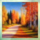 The colours in the picture are vibrant and rich, with warm oranges, yellows, and reds blending together to create a stunning autumnal palette. The birch trees are rendered in exquisite detail, with the white bark standing out in sharp contrast against the surrounding foliage. The painting has a sense of movement and life that is almost tangible, with the viewer feeling as if they are walking down the driveway themselves.