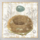 © Moira Hershey / Wild Apple. A bird's nest made of brown branches with a decorative egg. There are sketches of plants and leaves in the background.