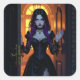 Witch themed Halloween stickers with ai art depicting a. beautiful witch in black and purple holding a door open saying come in if you dare! Great for sealing Halloween invitations or party favour bags.